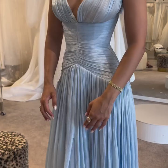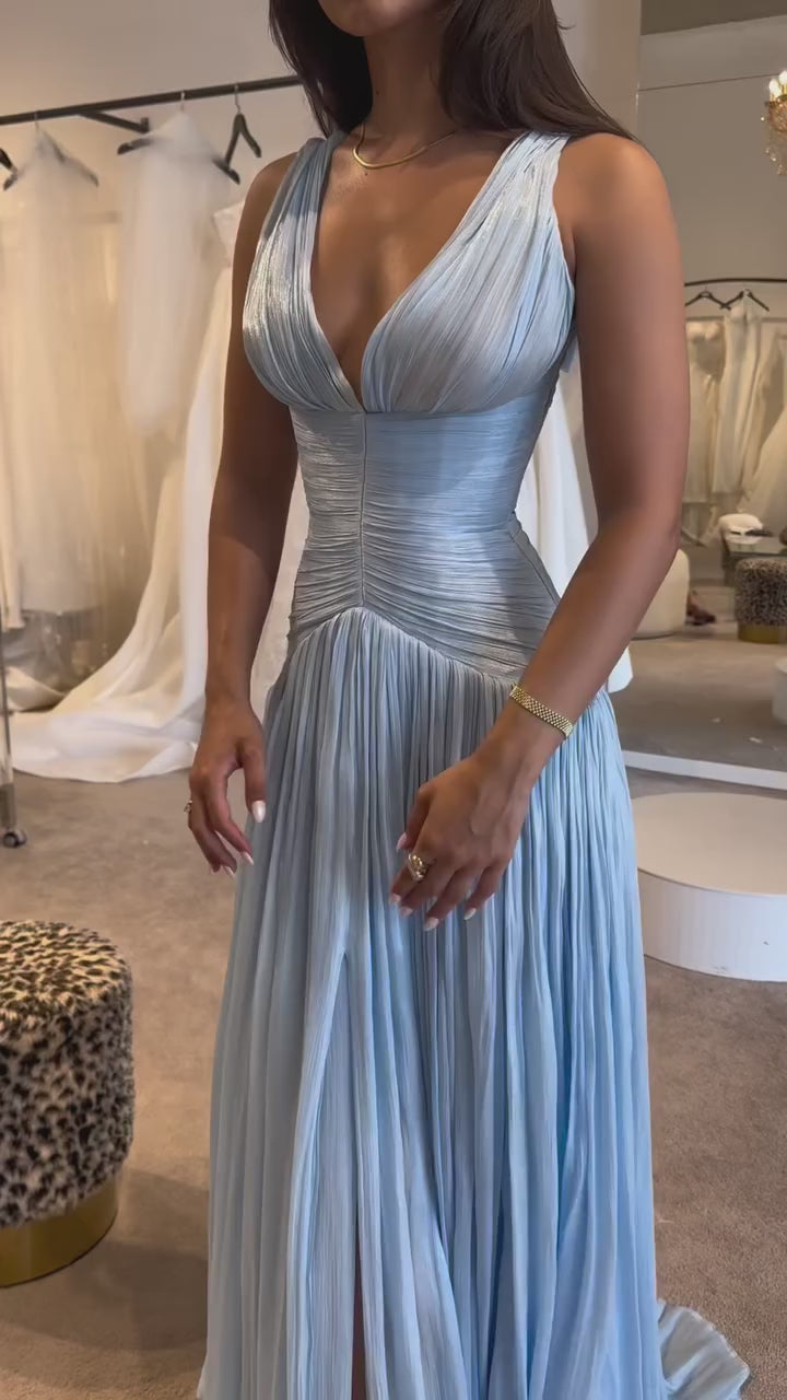 El vestido es precioso, la tela tiene caída y no se arruga fácilmente. Ideal para eventos elegantes.